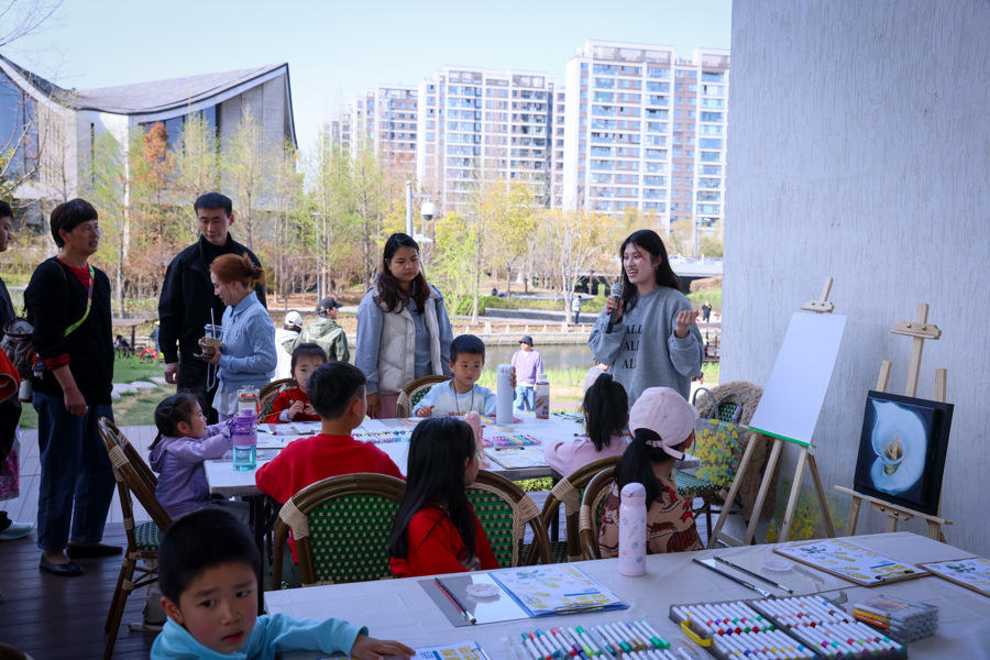 “天气好,想着带家人出门来踏个春,没想到一路上遇到了各种文化艺术活动,真是养眼又养心。”从宝山赶来的夏琳看完汇演,便被女儿拉到不远处的余德耀美术馆参加一场艺术写生活动,描绘的对象正是馆外绽放的一片油菜花田。而此时,一场由青浦特色团队“放歌天团”带来的春日欢唱派对正在馆前广场上火热举行。当天,各类美育活动在蟠龙新天地多点开花,徜徉其中,不经意间邂逅江南民歌、街舞、越剧、花样跳绳、广场舞等,可谓“一步一景、一景一艺”。