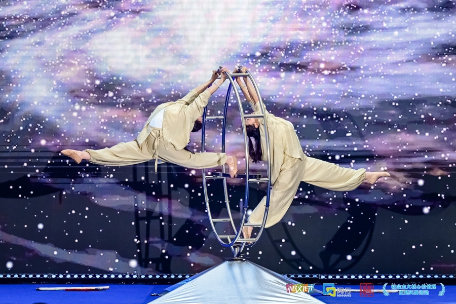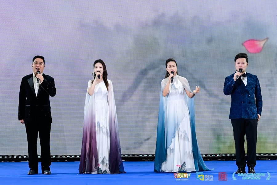 在主会场青浦蟠龙新天地,一场特色群文汇演吸引了众人驻足。群舞《古井趣事》、男生小组唱《问花名》、器乐重奏《海上·云梦》、戏曲跨界流行乐的《亮相》、方言歌曲《吃啥?吃蟹,去崇明吃蟹》、群舞《上海的夜》等获奖节目轮番上演,一展上海群文的精彩。舞台旁的“六业雅集”,江南风情、都市摩登、农家鲜味、非遗匠心,尽数荟萃。