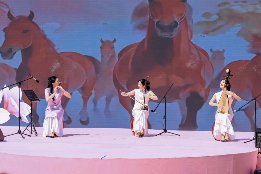 当第一声清越的笛音划破天空,这场奇妙的和鸣便在上海市群众艺术馆清韵江南丝竹乐团带来的开场曲《弦歌跃马》中拉开序幕。流畅舒缓的《中花六板》、活泼灵动的《行街》……丝竹乐特有的“细、小、轻、雅”风格,与樱花的娇柔、静谧互为映衬,令人赏心悦目。